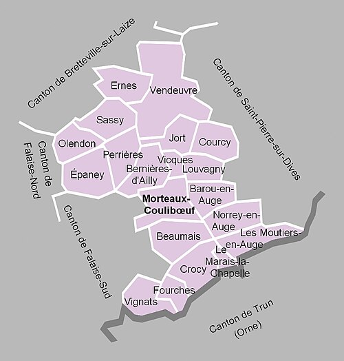 Au cœur du Calvados, entre bocages, vergers et clochers, l’ancien canton de Morteaux-Coulibœuf rassemblait vingt communes soudées par leur histoire et leur art de vivre normand. Des villages pleins de charme, des églises romanes, des châteaux discrets, des champs à perte de vue… mais aussi des souvenirs gravés par les grandes et petites histoires. Ce territoire, façonné par des siècles de vie commune et de transformations administratives, formait une communauté humaine riche et fière de ses racines. En 2012, le canton de Morteaux-Coulibœuf comptait 5 072 habitants et regroupait les communes suivantes :